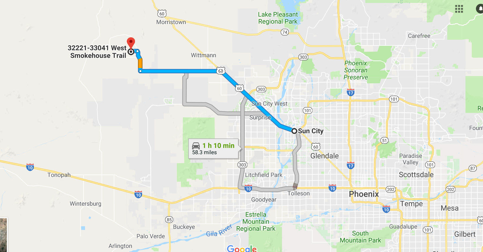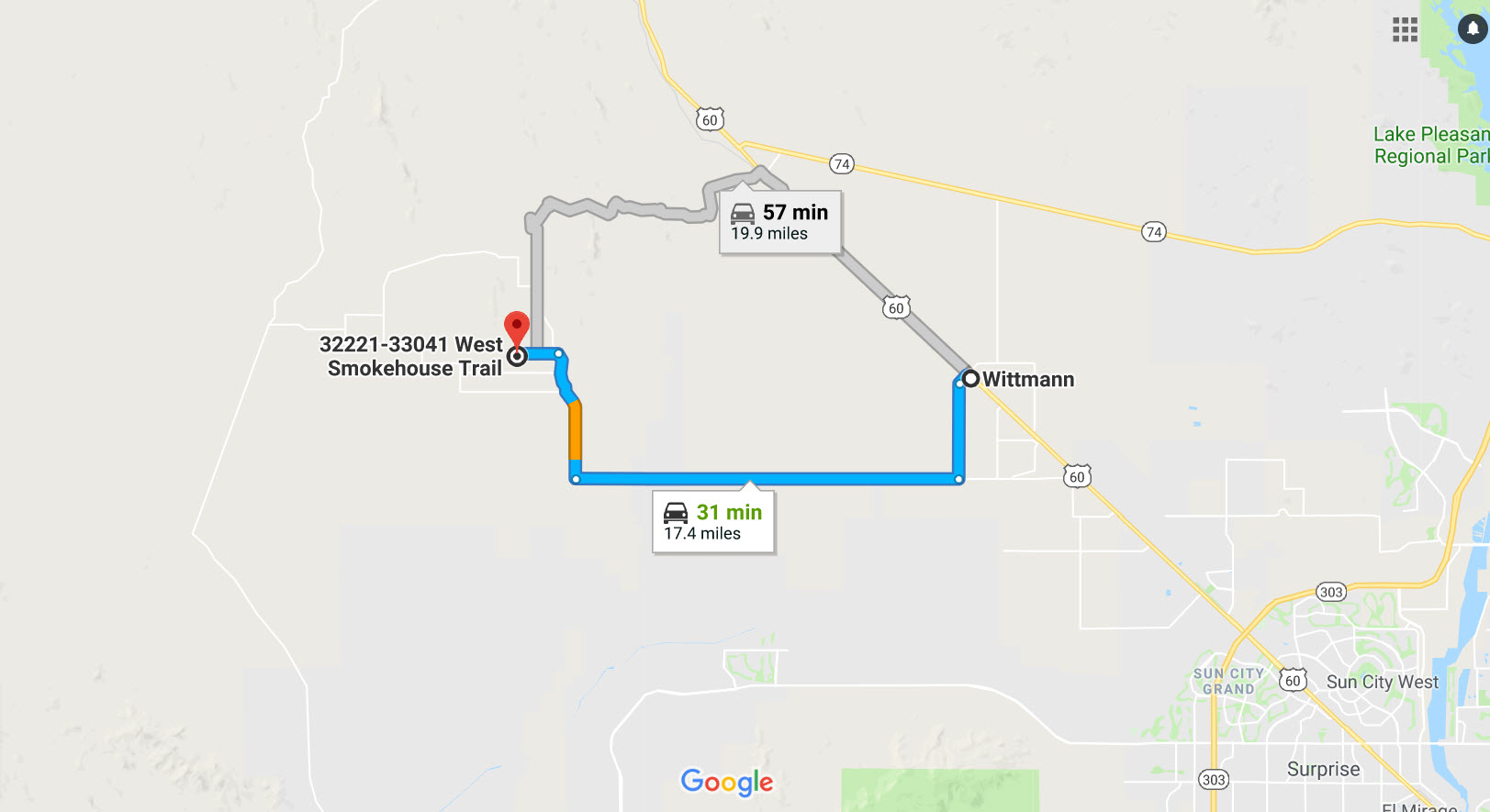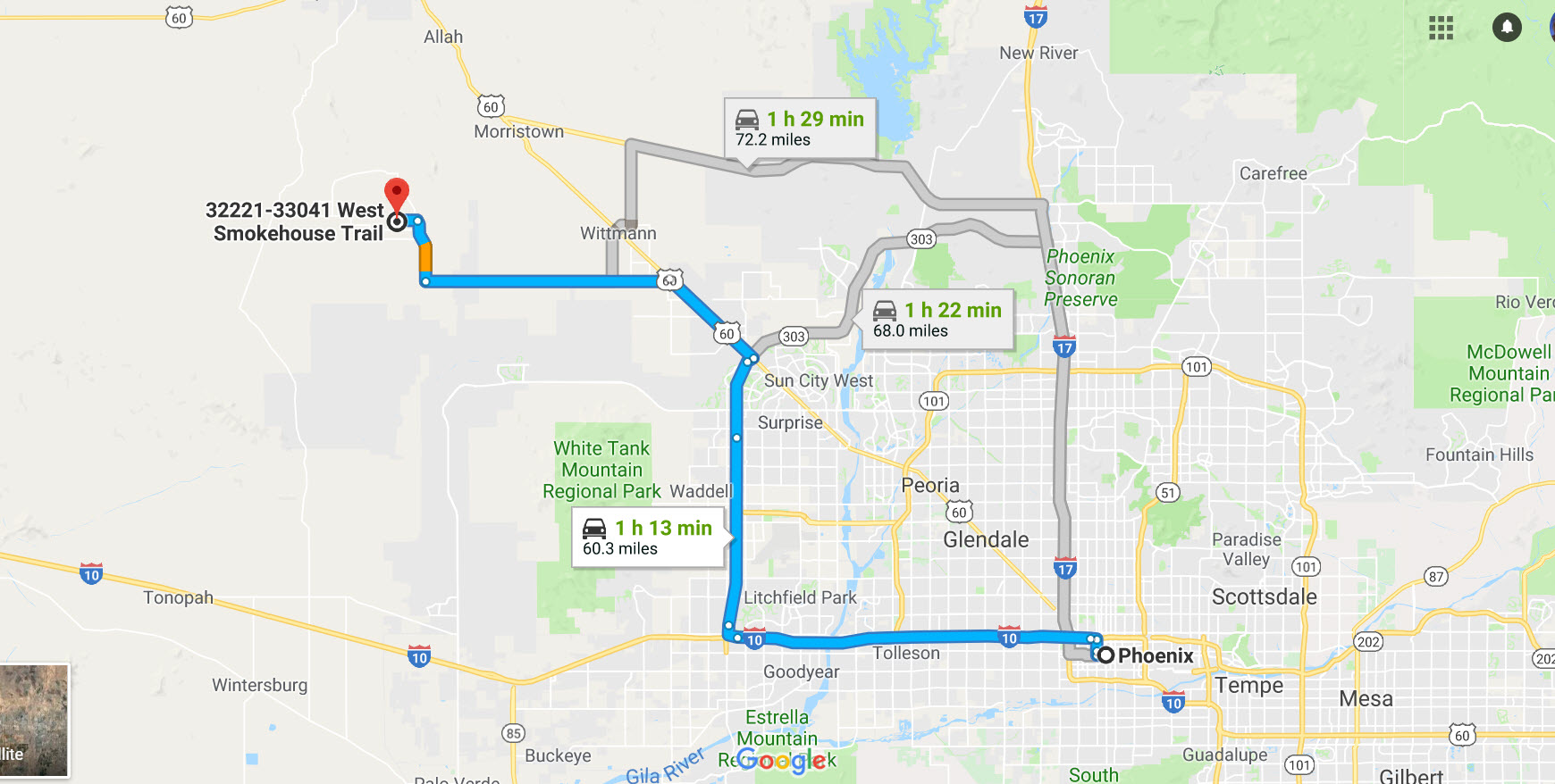 General Location: 17.7 miles to Wittmann and 1 hour northwest of Phoenix, AZ