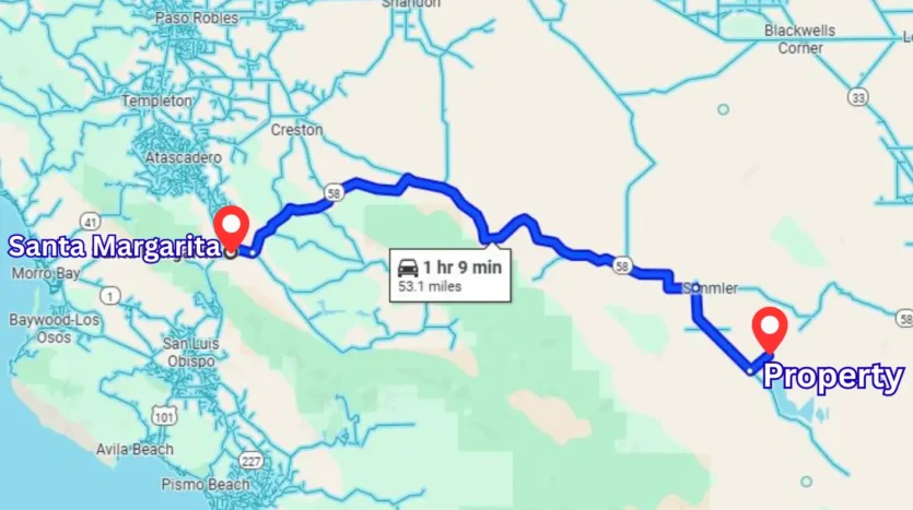 General Location: 53 miles to Santa Margarita, California
