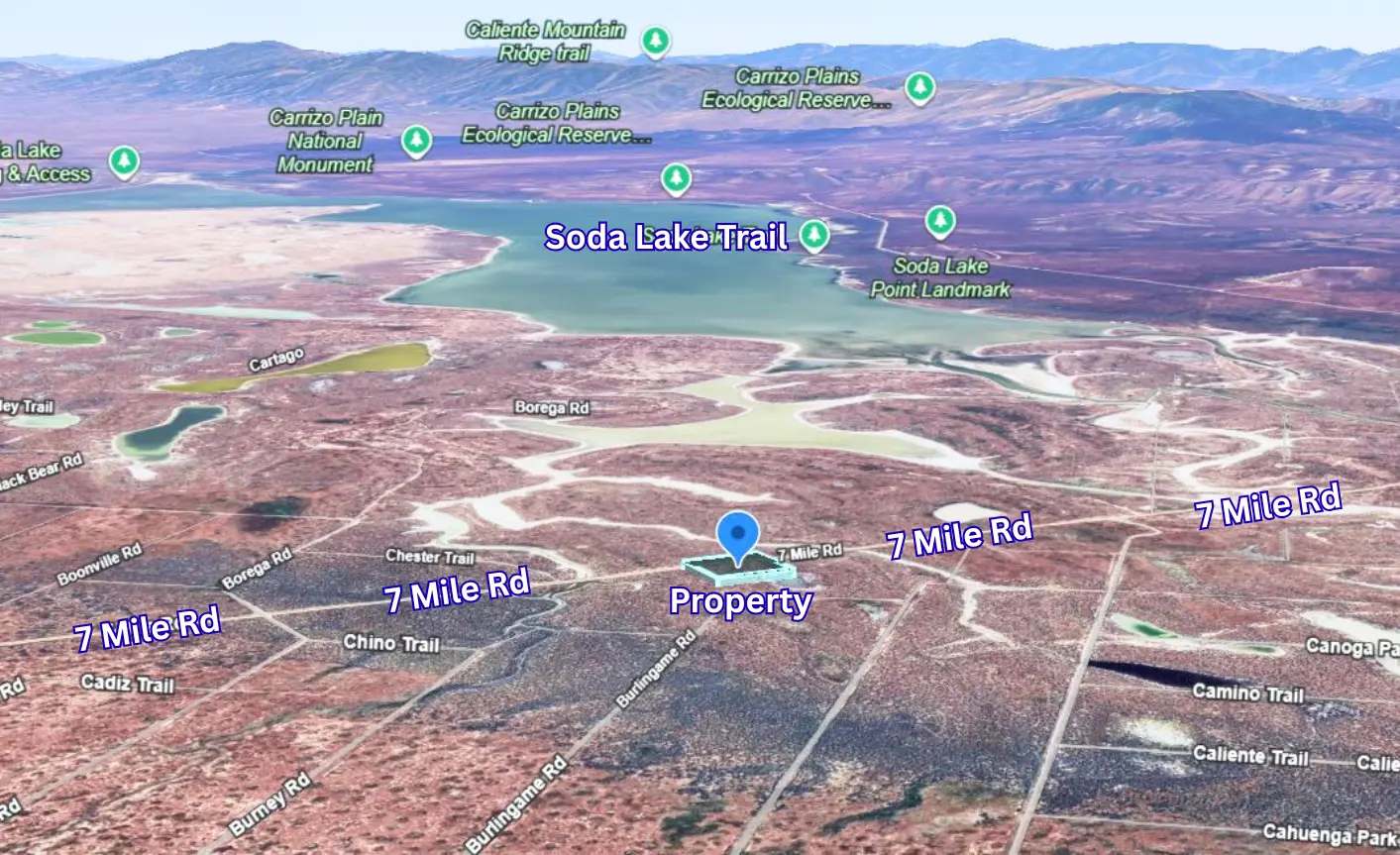 Looking for your slice of California paradise? This 2.5-acre property near Soda Lake is perfect for sustainable rural living, a weekend getaway, or a smart long-term investment. Super affordable and centrally located, it gives you easy access to San Luis Obispo, Paso Robles, Los Angeles, Bakersfield, Yosemite, and even San Francisco. Just 4 miles from the Soda Lake Trail and close to the National Monument boundaries, you’ll be surrounded by nature and adventure. With easy dirt road access, road frontage off 7 Mile Rd, and Highway 58 nearby, getting to and from the property is simple and convenient. This lot comes with city power nearby and the option to drill a household well, giving you flexibility to build your dream retreat or keep it as a vacation spot. There are no HOA restrictions or covenants, so you have the freedom to use the land as you wish. Imagine spending weekends exploring Paso Robles wineries and craft breweries, hunting on nearby BLM property, or just relaxing under the stars. In the spring, you’ll enjoy the famous super blooms that transform the valley into a breathtaking sea of wildflowers. Whether you’re looking to build, camp, or simply invest in land, this property offers incredible value and unmatched serenity. Seller financing is available with a low down payment and affordable monthly terms, making land ownership easier than ever. Don’t miss this chance to own a beautiful and affordable piece of California.