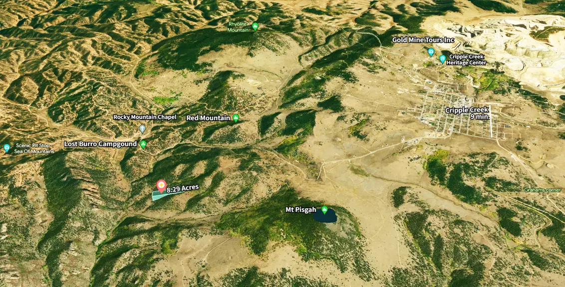 This 8.29 acres lot is perfect for a weekend adventure retreat or full-time off-grid mountain living! The west side of the lot borders thousand acres of BLM. Private and peaceful with tremendous views. It has tremendous acreage to hike and explore. Barnard Creek is just 1000 feet away. Supper close to Lost Burro Campground. It is zoned for Agricultural or residential use. No Homeowners Association or covenants. Utilities will be well/septic/propane/solar power. There’s a 4WD dirt road shared by nearby owners reach to the southeast corner of this lot. This lot is your private oasis while it is not far from downtown Cripple Creek and Colorado Springs. Please make a trip to visit this beautiful land and contact us if you have more questions.
