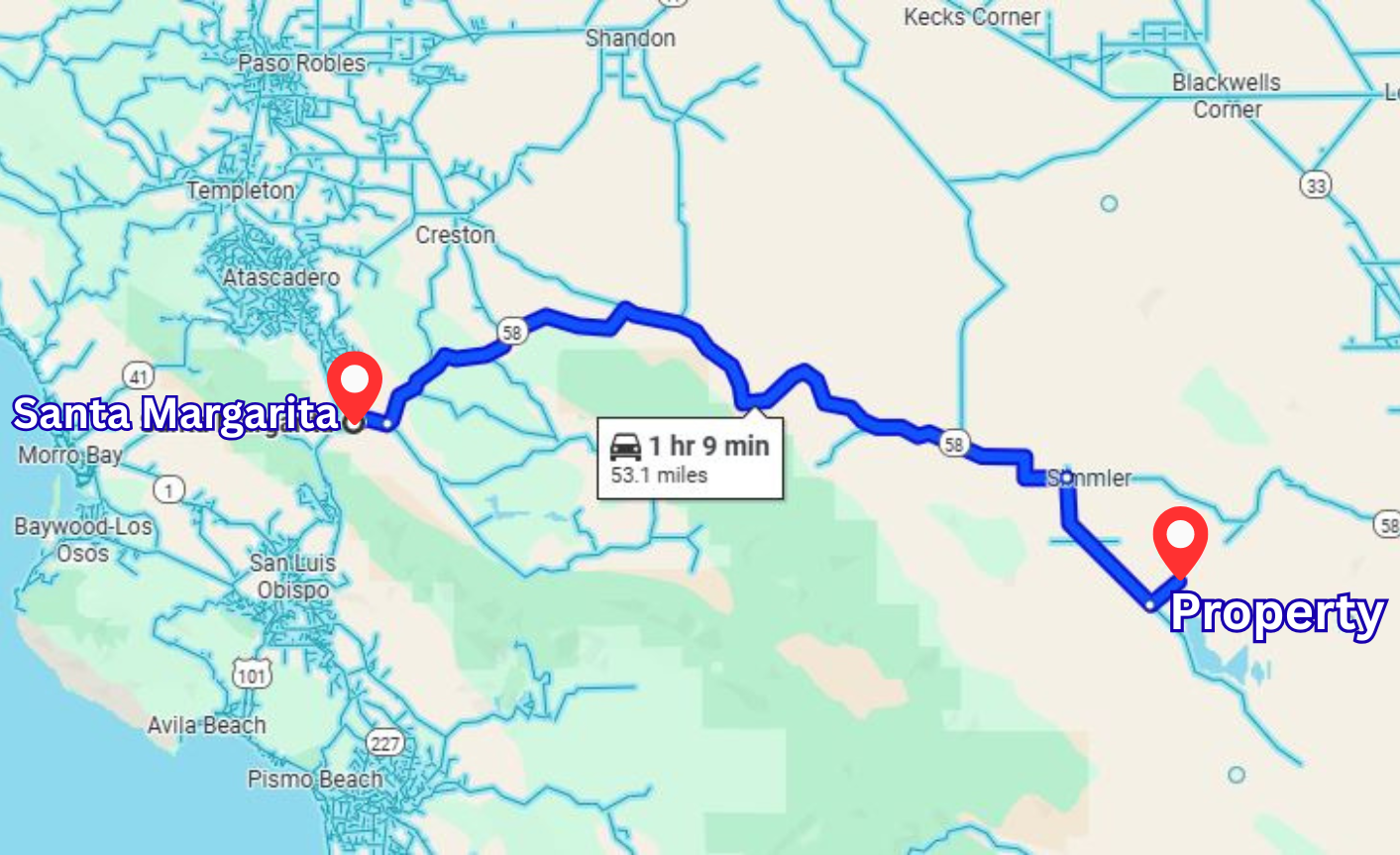 General Location: 53 miles to Santa Margarita, California