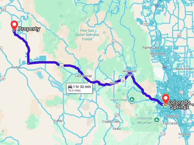 General Location: 11.6 miles to Como, 16.9 miles to Jefferson, 85 miles to Denver, and 75 miles to Colorado Springs